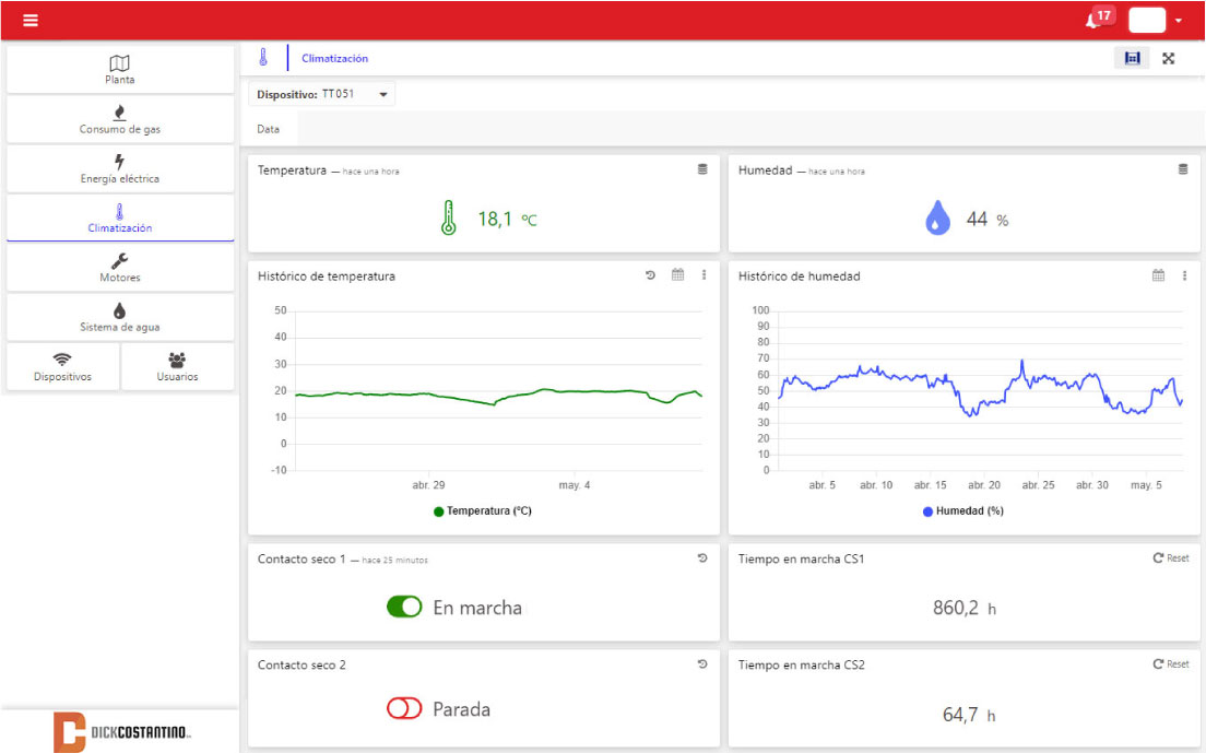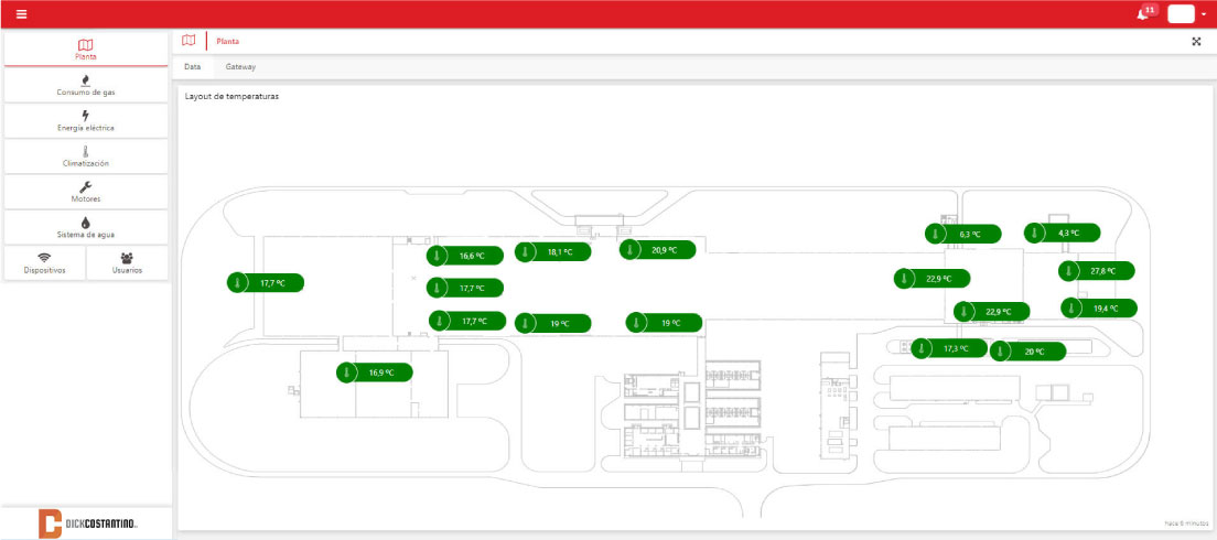 Para monitorear temperatura, humedad y consumo de servicios (agua, energia, gas, etc), esta planta industrial tenia un grupo de 6 personas divididos en 3 turnos, 24 horas al dia para tomar estas lecturas.